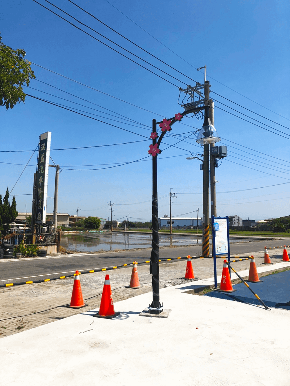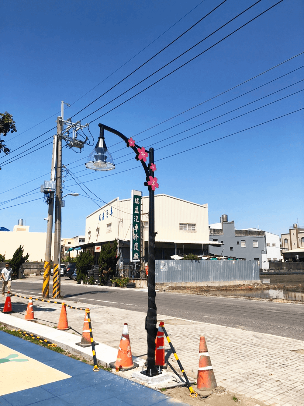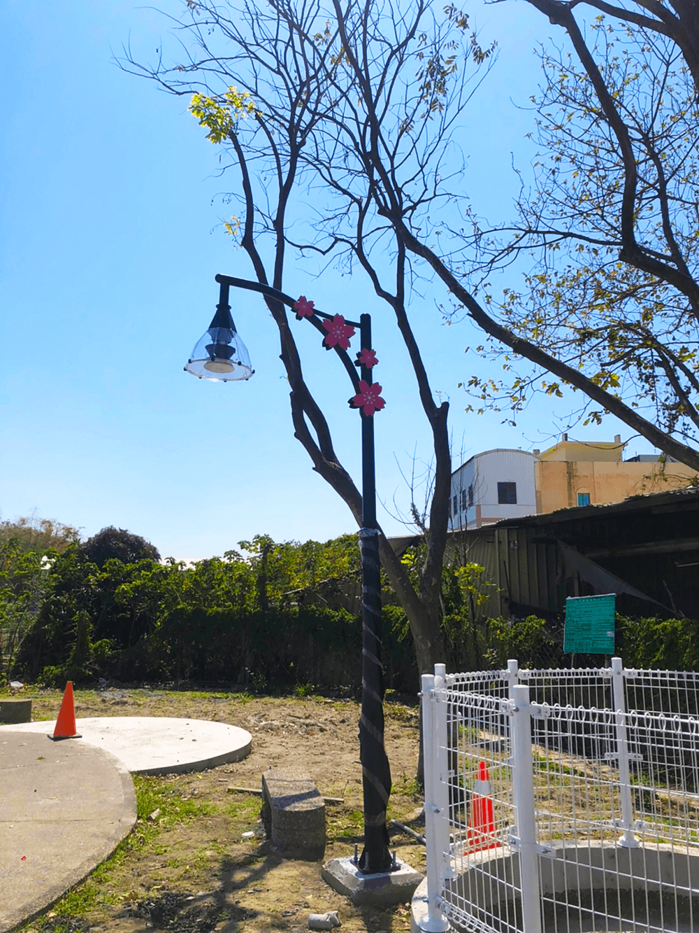此次在設計彰化埔鹽鄉公園時,我們將一盞盞的路燈上加上了特別的櫻花圖案,採用明亮的光源打造安全環境外,希望孩子可以在公園暢快遊玩,家長們可以在這美好的氛圍之下好好享受環境。